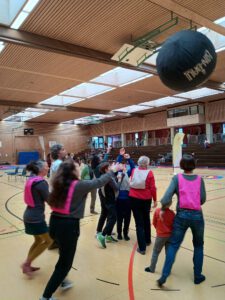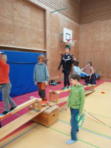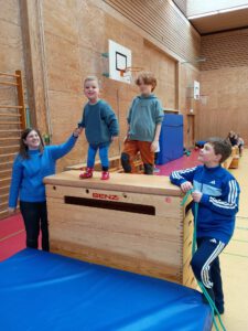 Viel Spaß gab es zudem für Groß und Klein in der Sporthalle: Wer schafft den Parcours? Gar nicht so einfach, den riesigen Kasten zu erklimmen und über die schmalen Bänke zu balancieren. Und wie kann man wohl diesen riesigen Kin-Ball in der Luft halten?